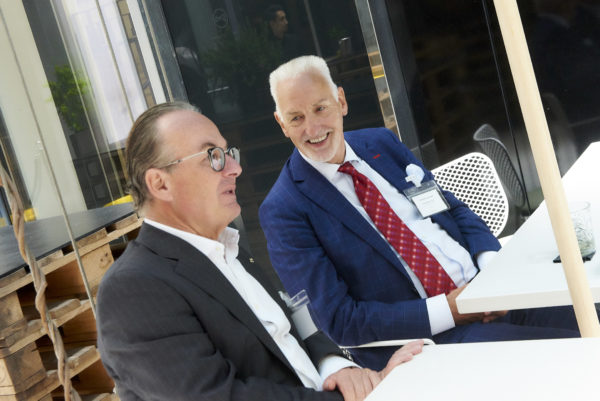 Marcus Wilhelm, Vorstandsvorsitzender des Airbus Group Pension Trust mit Barbara Bertolini bei der Anmoderation