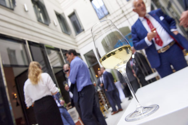 Zum Abschluss-Vortrag des Gipfeltreffens wurde der Wein "LiebeDich" serviert. Sommelier Daniel Galehr stellt den Wein den Gästen vor.